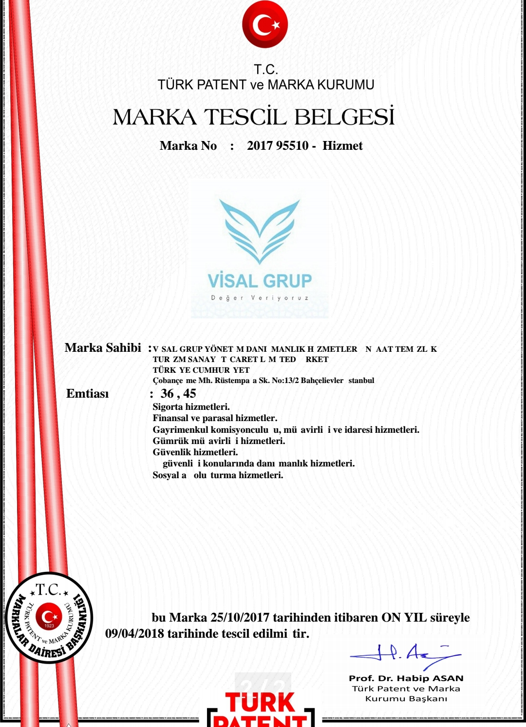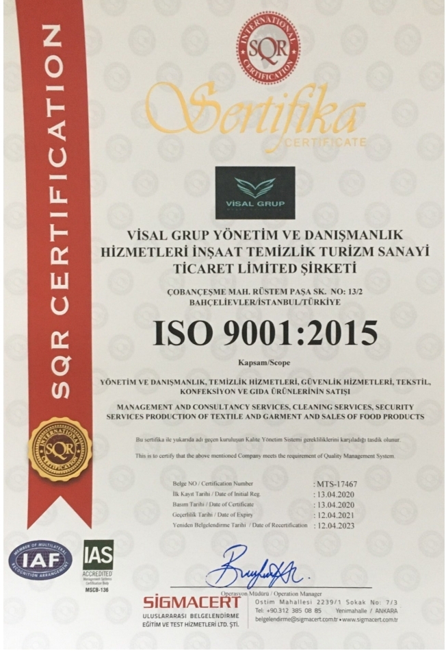 Modern, çağdaş, dinamik marka kimliğimizle sektöründeki güvenilir gücü global dünyada hizmet sektörünün talep edilen ihtiyaçlarının karşılanmasında AR-GE çalışmalarıyla hizmet kalitesinde memnuniyet odaklı yüksek trendi profesyonel bir anlayışla dönüştürmektedir. “Visal Grup” kuruluş amacına uygun yatırım araçlarını ticari kazanımlarının oluşmasında destekleyici ortamların gelişmesinde yaşamın devamlılığı için sosyal sorumluluk projelerinde ilkemiz yarınlarımıza destekleyici ortamlar sağlamaktadır.